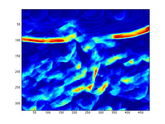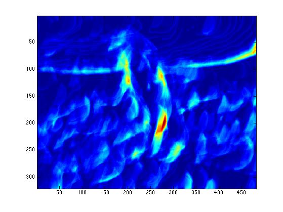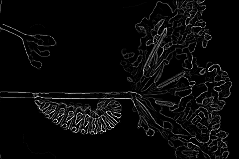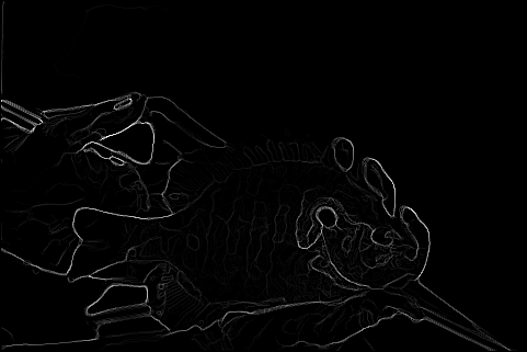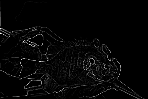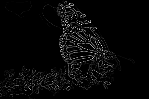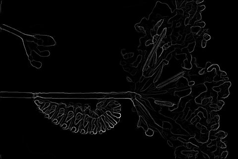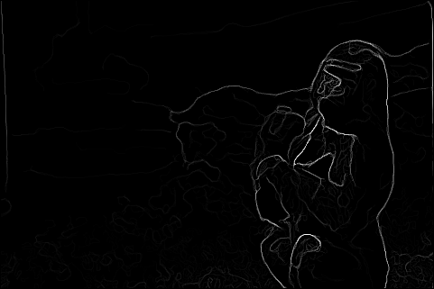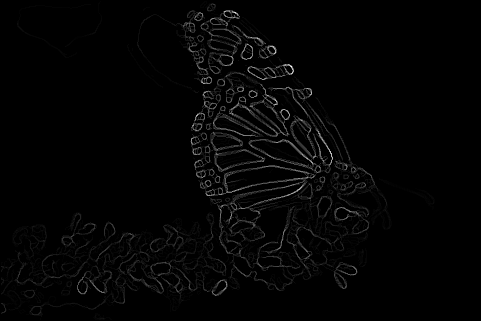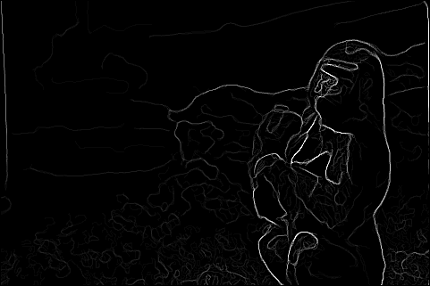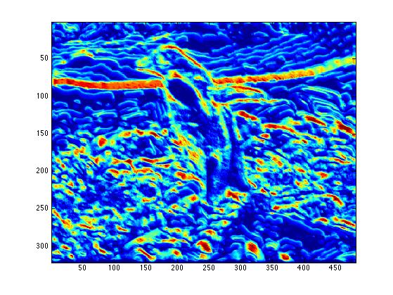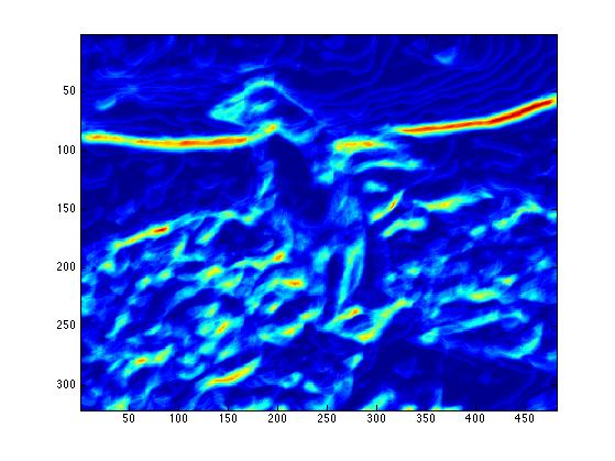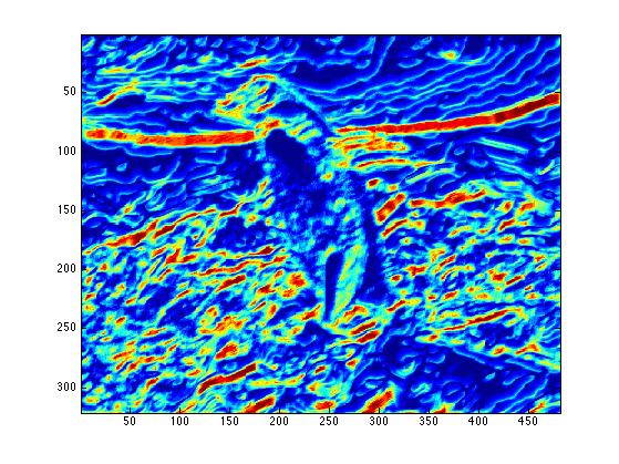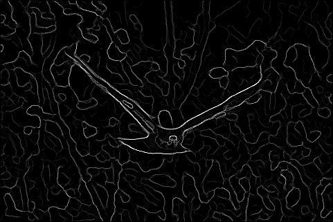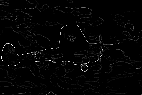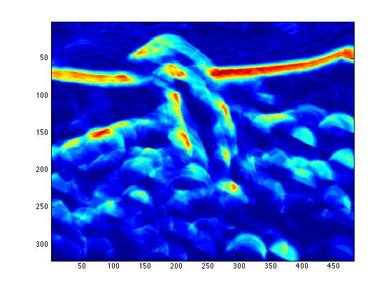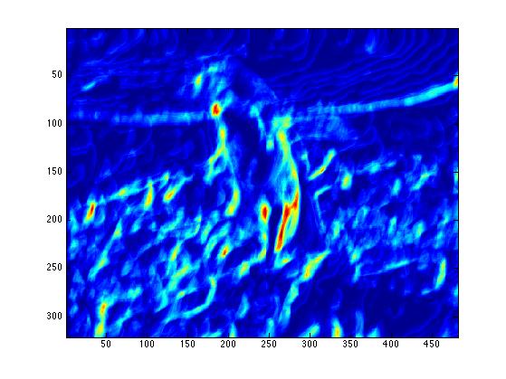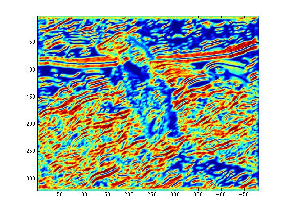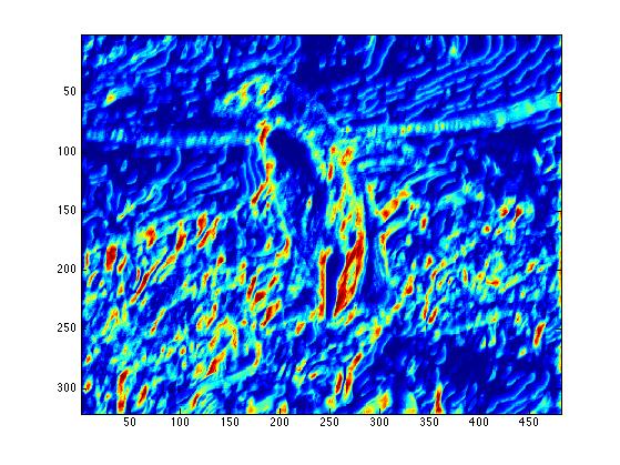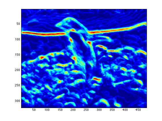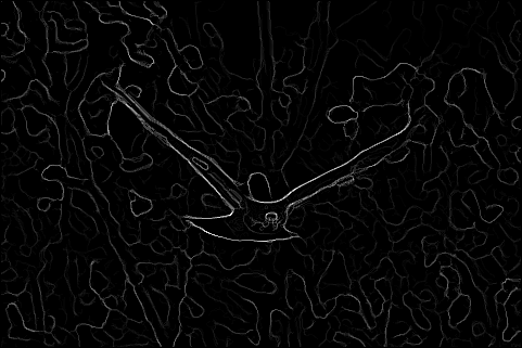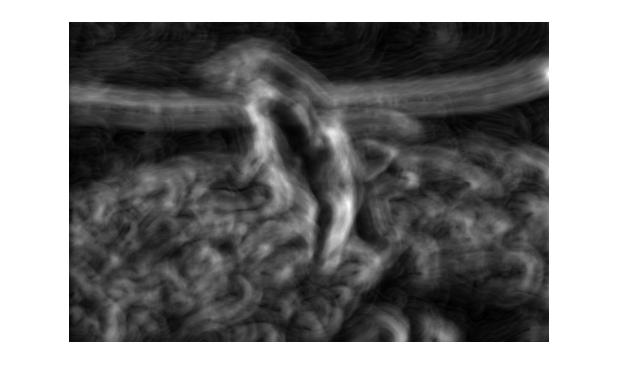 The end result is a stack of directional gradients at different scales. It would have been interesting to experiment with different weights for specific masks, but given the time constraints I just averaged all the results together.