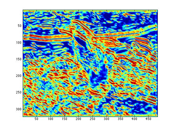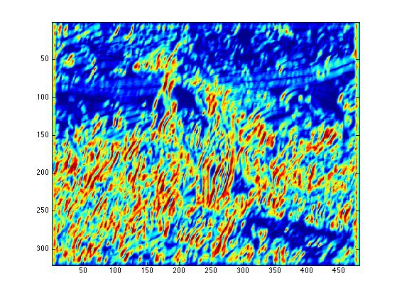 Results of texture gradients for different mask orientations / scales are shown in the table below. Note how larger radii detect areas with more dynamic texture distributions.