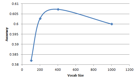 | Vocab Size | Accuracy | # Features chosen for clustering |