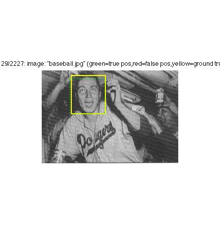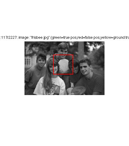 Rather than training on raw image data, we convert each of our training images to a SIFT descriptor, which is invariant under many non-relevant transformations (such as lighting). We then use an SVM to construct a boundary between faces and non-faces in SIFT space. The result of this work is a (rather poor) classifier for distinguishing between faces and non-faces. I get an average precision recall of around 28% for this classifier:
