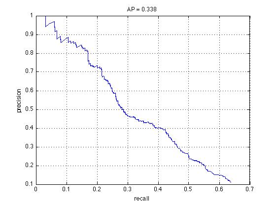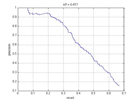 Using a non-linear SVM as a classifier improves results a bit more (these results were generated without mining for hard negatives; hard negative mining would probably have resulted in even better results):