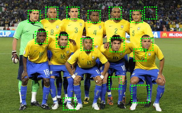 Fig. 0: Result of face detection by implemented algorithm. All faces detected with a few false positives