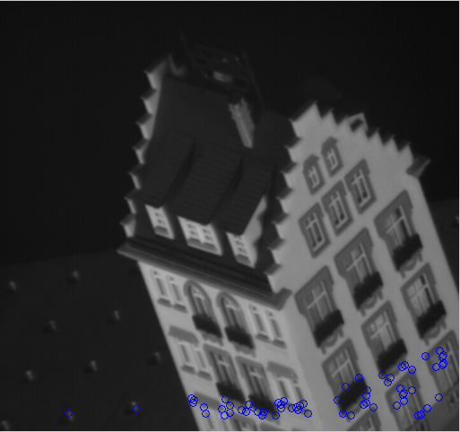 Fig. 1: 500 strongest keypoints detected in the first frame by the Harris Corner detector