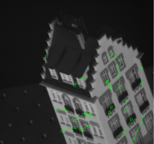 Fig. 3: Displacement shown by 20 random keypoints from the first frame to the last (shown on the first frame)